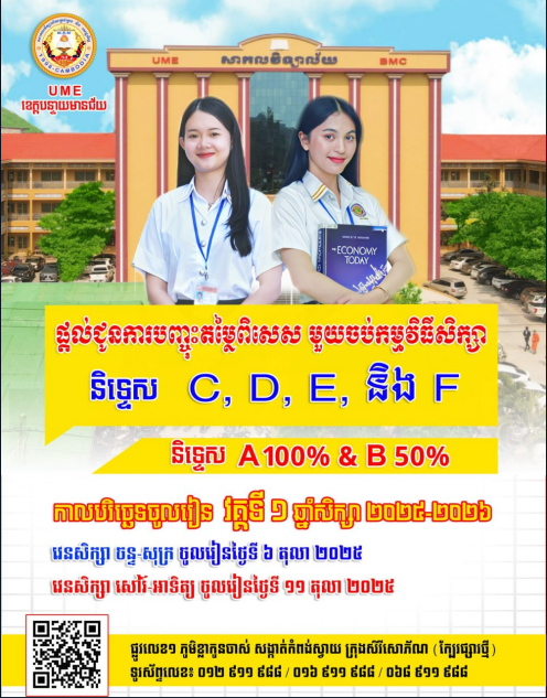 Promotion កម្មវិធីសិក្សា ពត៌មានពិសេស ការជ្រើសរើសជំនាញសិក្សា ក្នុងឆ្នាំសិក្សា 2025-2026 7 months ago sitha