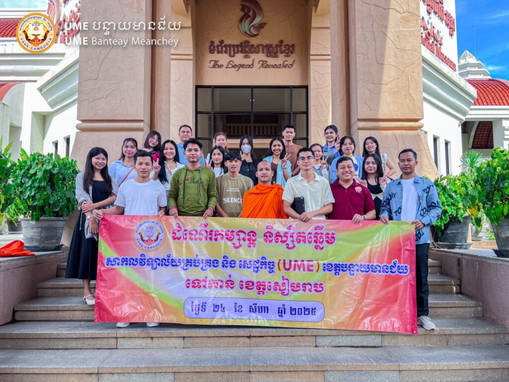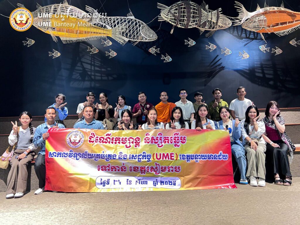 កម្មវិធីសិក្សា ពត៌មានទស្សនៈកិច្ច ពត៌មានពិសេស ដំណើរទស្សនៈកិច្ច របស់និស្សិតឆ្នើម ទៅកាន់ ខេត្តសៀមរាប 6 months ago sitha TweetShareSharePin0 Sharesការធ្វើដំណើរទៅដល់អង្គរវ៉ាយដ៍ឡាយហ្វ៍ & អឺឃ្វារៀម (Angkor Wildlife & Aquarium) ខេត្តសៀមរាប របស់និស្សិតឆ្នើមនៃសាកលវិទ្យាល័យគ្រប់គ្រង និង សេដ្ឋកិច្ច ខេត្តបន្ទាយមានជ័យ (UME-BMC) នារសៀលថ្ងៃទី២៤ ខែសីហា ឆ្នាំ២០២៥អង្គរវ៉ាយដ៍ឡាយហ្វ៍ & អឺឃ្វារៀម (Angkor Wildlife & Aquarium)សារមន្ទីរជាតិ អង្គរ ខេត្តសៀមរាបTweetShareSharePin0 SharesContinue ReadingPrevious ការជ្រើសរើសជំនាញសិក្សា ក្នុងឆ្នាំសិក្សា 2025-2026Next មណ្ឌល សាកលវិទ្យាល័យគ្រប់គ្រង និងសេដ្ឋកិច្ច (UME) ខេត្តបន្ទាយមានជ័យ ពត៌មានបន្ថែមជាទីចាប់អារម្មណ៍ (Interest) កម្មវិធីសិក្សា ការិយាល័យ ពត៌មានពិសេស បើកបវេសនកាល ឆ្នាំសិក្សាថ្មី 2 weeks ago sitha កីឡា ពត៌មានពិសេស សុខភាព UME BMC-CUP 2025-2026 3 months ago sitha Promotion ពត៌មានពិសេស រួសរាន់ឡើង ផុតកំណត់ Promotion 1 3 months ago sitha Leave a Reply Cancel replyYour email address will not be published. Required fields are marked *Comment *Name * Email * Website Save my name, email, and website in this browser for the next time I comment.